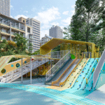 Sensory exploration is a cornerstone of early learning. The Harmony Playground is a feast for the senses. Visually, the vibrant colours, diverse shapes, and integration with natural elements like trees and greenery are stimulating and engaging. Tactile exploration is encouraged through the variety of materials: the cool smoothness of the metal slides, the specific textures of the climbing holds, the yielding quality of the sand, the patterned surface of the running track, and the feel of the safety railings. The act of climbing, sliding, and running provides rich proprioceptive feedback (awareness of body position) and vestibular stimulation (sense of movement and balance), which are essential for developing coordination and motor control. Even the sounds of play – laughter, footsteps, voices – contribute to the sensory richness of the experience, creating a vibrant and stimulating atmosphere conducive to learning and development.